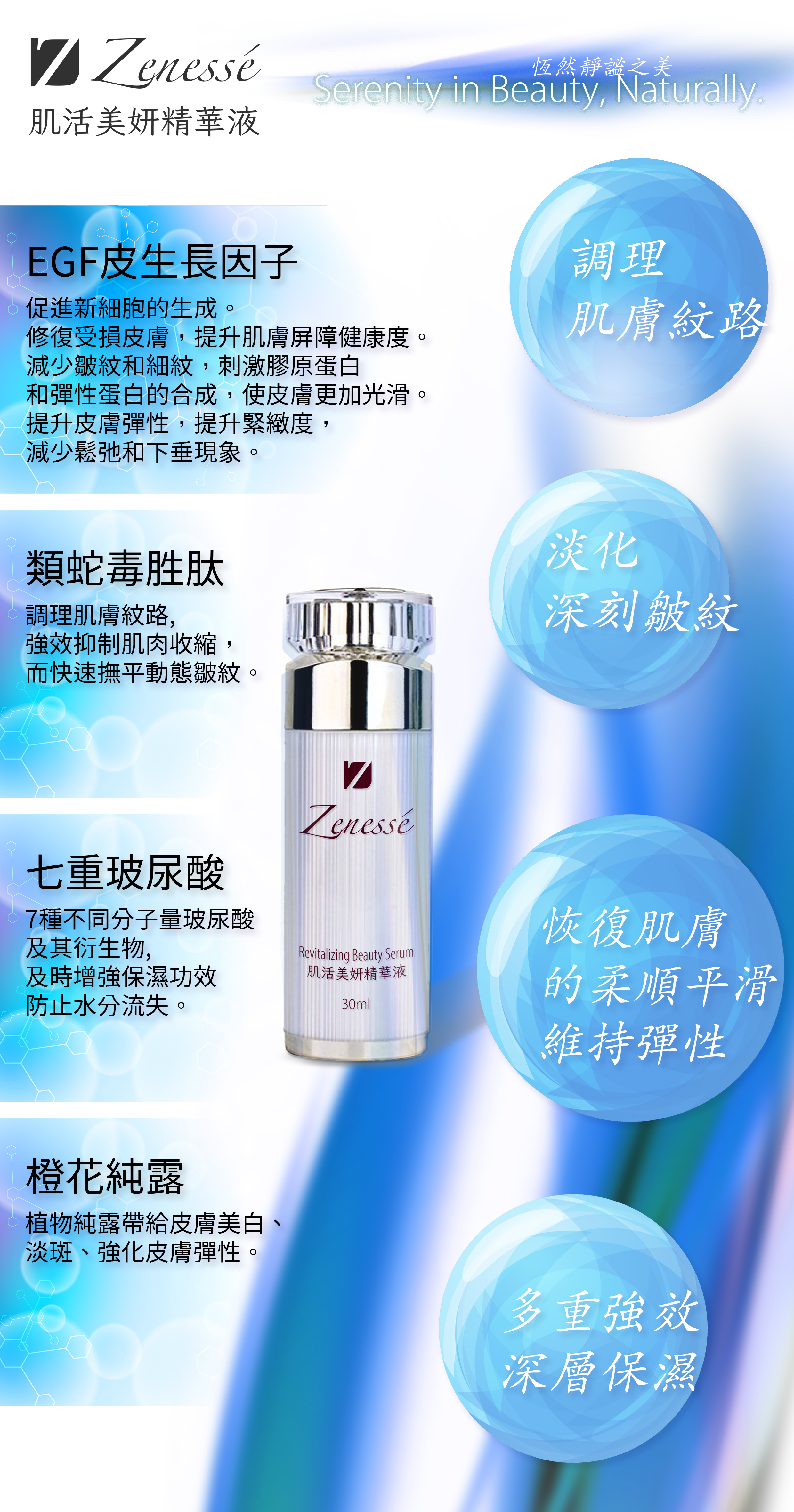 主要成分:EGF生長因子+類蛇毒肽+七種玻尿雖+橙花純露+Q10黃金比例